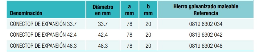 INFORMACIÓN TÉCNICA. APLICACIÓN; -Barandillas de seguridad / barreras de protección. -Protecciones contra caídas. -Otras aplicaciones para trabajos de seguridad. -Protección de maquinaria. -Áreas de juego. MATERIAL: -Hierro galvanizado maleable. NORMA - Conector de Expansión. Medidas 33.7 - 42.4 - 48.3. Uniones Modulares de tubo para sistema de seguirdad. Fabricado con hierro galvanizado maleable para garantizar la resistencia, la calidad y la conformidad de la producción. Las uniones Norma se pueden montar fácilmente en tuberías para crear sistemas de seguridad. Tornillo de acero inoxidable. Garantía hasta 1.500 N/m de carga. Sin soldadura, por lo tanto no se requieren permisos para fuego. Sin rosca, sin pernos. Se puede ensamblar con una simple llave hexagonal. Un sistema versátil que permite realizar cambios sobre el terreno. Se puede pintar.