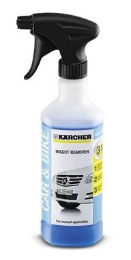 Limpia los insectos de superficies pintadas, parrillas delanteras, espejos retrovisores exteriores, lunas y plástico. Aplicación: rociar sobre la superficie seca, dejar actuar de 3 a 5 minutos y limpiar a fondo con alta presión. Capacidad 0,50 litros. Detergente en spray.