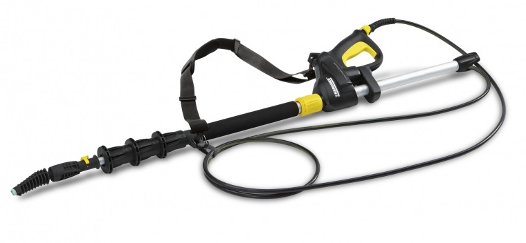 Lanza telescópica (1,20-4m) para limpiar fácilmente zonas de dificil acceso. Con correa para el hombro, acoplamiento de bayoneta y pistola integrada ergonómicamente adaptable. Peso: aprox.2Kg.