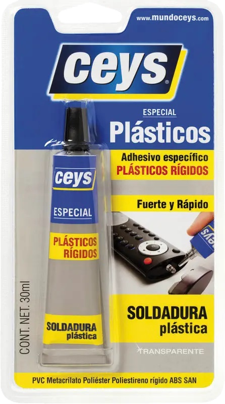 Pegamento de soldadura para plásticos duros o rígidos, como PVC, poliéster o metacrilato. Tiene capacidad de llenado. Es transparente.Fuerte y robusto. Transparente. Interior-exterior. Rellena agujeros y resiste el agua. Materiales: Asientos de PVC, poliéster, metacrilato, plexiglás, ABS, SAN, poliestireno rígido, plástico rígido. No apto para Polietileno, Polipropileno o PTFE.