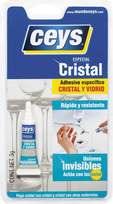 Adhesivo rápido para pegar cristal y vidrio entre sí o con otros materiales rígidos. Indicado para pegar superficies planas o que encajen perfectamente. El adhesivo invisible para cristal. CARACTERÍSTICAS: Ultra rápido, pega en segundos. Invisible, no blanquea. Resiste altas temperaturas (hasta +70°C). Resiste agua y detergentes. Actúa con luz solar. APLICACIONES: Decora y arregla cualquier pieza de cristal: Copas, vasos, jarrones de cristal, piezas de cristal en lámparas u otros objetos…MATERIALES: Cualquier tipo de cristal y vidrio. Pega cristal con cristal y cristal con otros materiales
