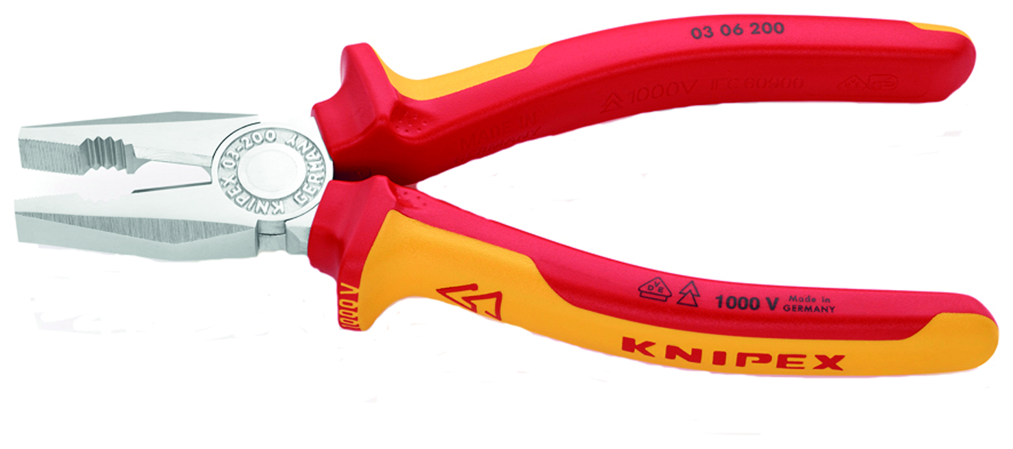 Alicate cromado, mangos aislados con fundas en 2 componentes. Con zonas de agarre para materiales planos y redondos. Para cortar alambre blando y duro . Filos de corte templados adicionalmente por inducción. Acero especial para herramientas, forjado, templado al aceite.