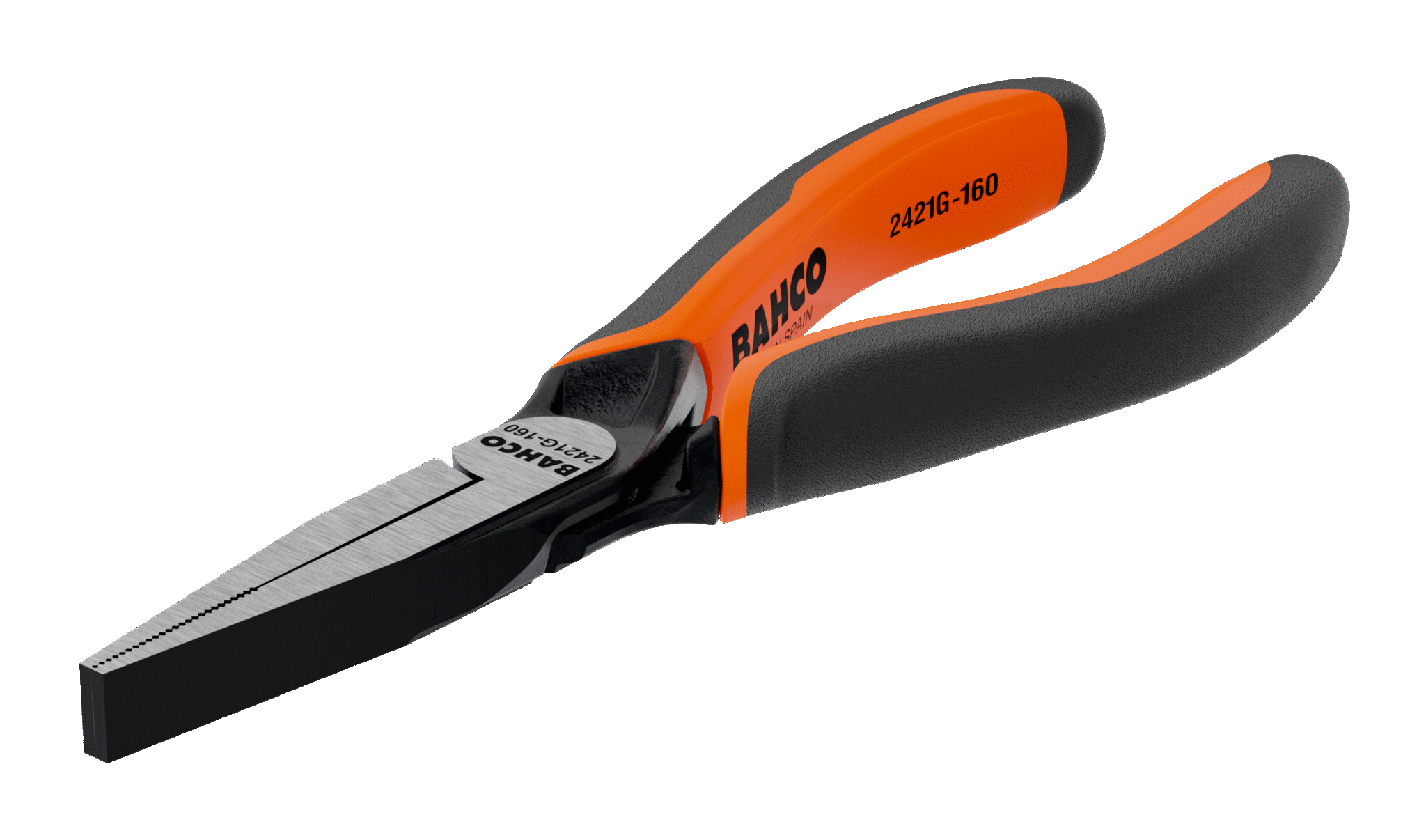 Alicates ERGO™ de boca plana y cabeza larga, con mangos bi-materiales 2421G. Mangos ERGO ™ bi-componentes. Desarrollado de acuerdo con el proceso científico ERGO ™. Equipado con un muelle de retorno on-off . Diseñado especialmente para materiales planos. Aleación de acero de alto rendimiento. Acabado fosfatado, tratamiento anticorrosión. IP = Embalaje industrial