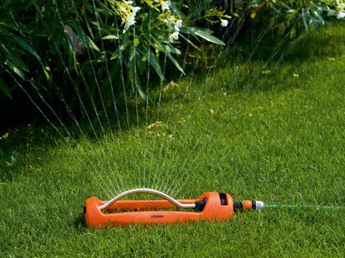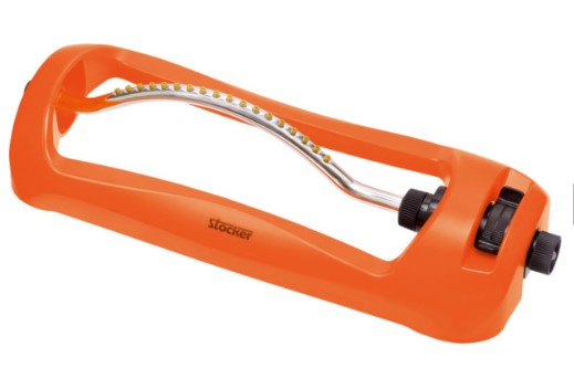 Para el riego de áreas rectangulares y cuadradas. - 18 boquillas garantizan una perfecta emisión del chorro - Salida regulable de continuo y flujo de agua variable - Con base de plástica Superficie de riego: 120 m² - max 260 m²