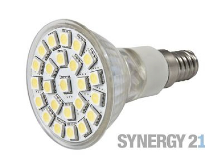 Características técnicas: Casquillo: E14 Número de LEDs: 24 SMD5050 Alimentación: 230V Flujo luminoso: 350lm Consumo: 4,1W Temperatura termodinámica: 2700-3300K Ángulo de enfoque: 120° Carcasa de cristal Dimensiones: 50 x 75 mm Tenga en cuenta que las bombillas de Synergy 21 deben de funcionar a una temperatura entre 0-50º, fuera de estos límites no se puede garantizar la vida de los LED.