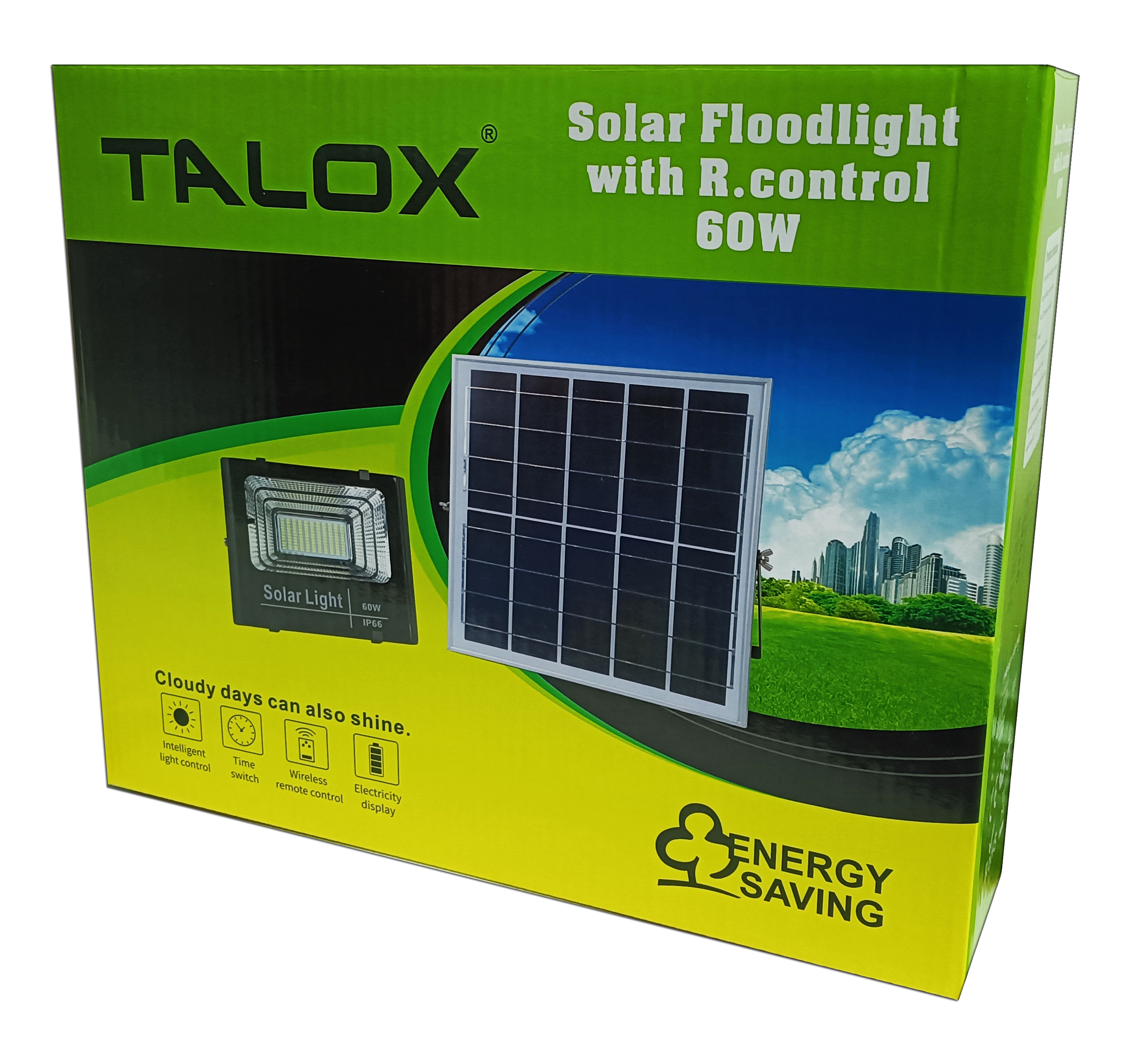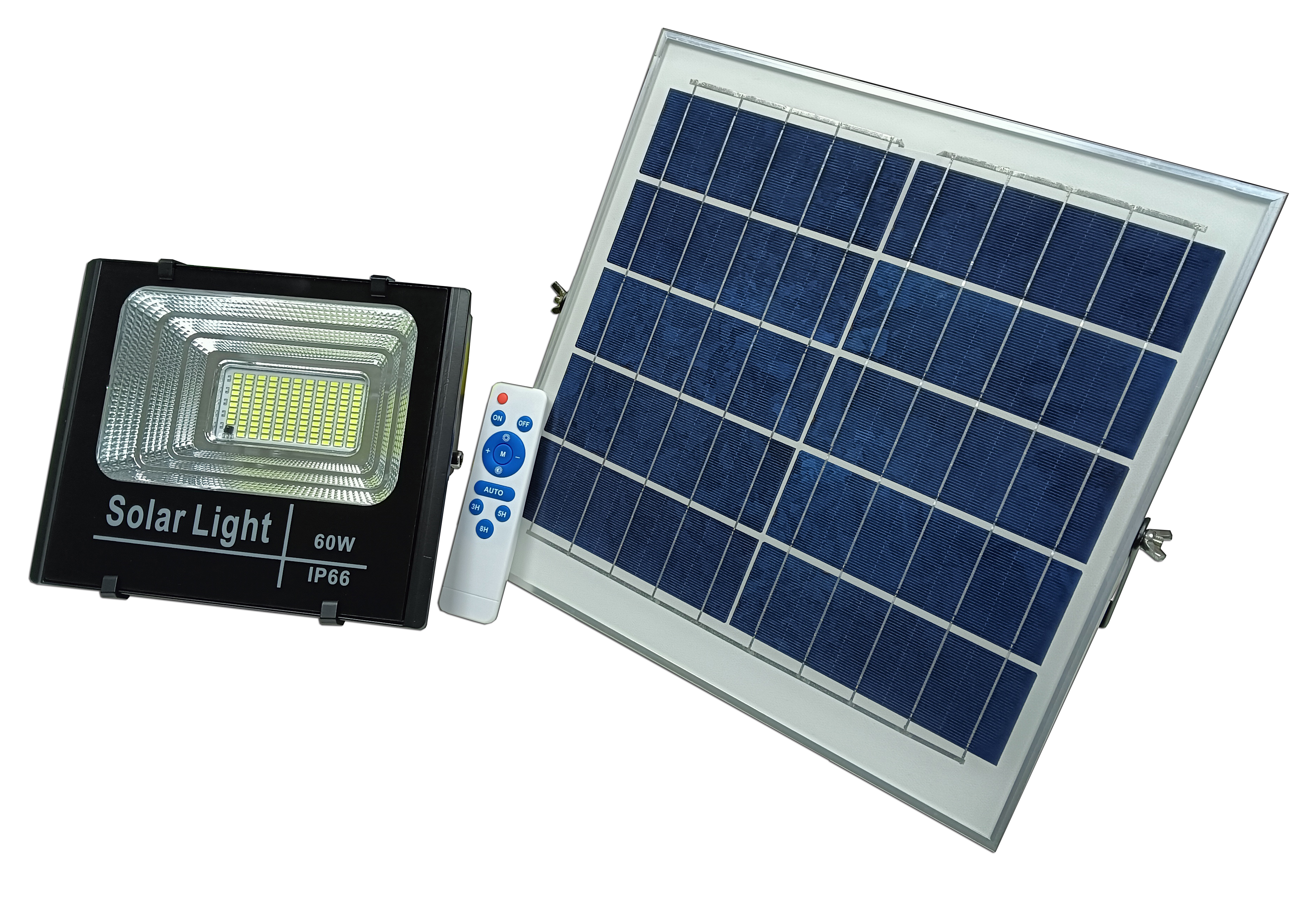 Foco proyector LED Solar orientable con chip. Fabricado en aluminio para su gran disipación y cristal. Cuenta con un IP66 que lo hace ideal para zonas de exterior. El foco proyector LED Solar incluye panel solar con un cable de aproximadamente de 3 mts de longitud, soporte para el panel solar y mando a distancia. Funcionamiento: La luz se enciende automáticamente al anochecer con luminosidad reducida del 50% hasta por la mañana. El sensor integrado activa la luz con máxima intensidad durante 30 segundos si detecta una presencia en un espacio de 7-8 metros hasta cuando deja de detectar movimientos. Funciones del Mando a distancia: Botón ON/OFF: el proyector LED se enciende al pulsar el botón ON y pulsando el botón OFF, el proyector se apaga. (El proyector no se podrá encender de día o cuando capte suficiente luminosidad en el entorno) Botón máxima luminosidad: Aumenta la luminosidad en intervalos de 20% hasta llegar al 100%. Botón mínima luminosidad: Disminuye la luminosidad en intervalos de 20% hasta llegar al 20%. Cuando el panel Solar no detecta luz solar, el foco se encenderá automáticamente. Tarda aproximadamente 6 horas en descargarse.