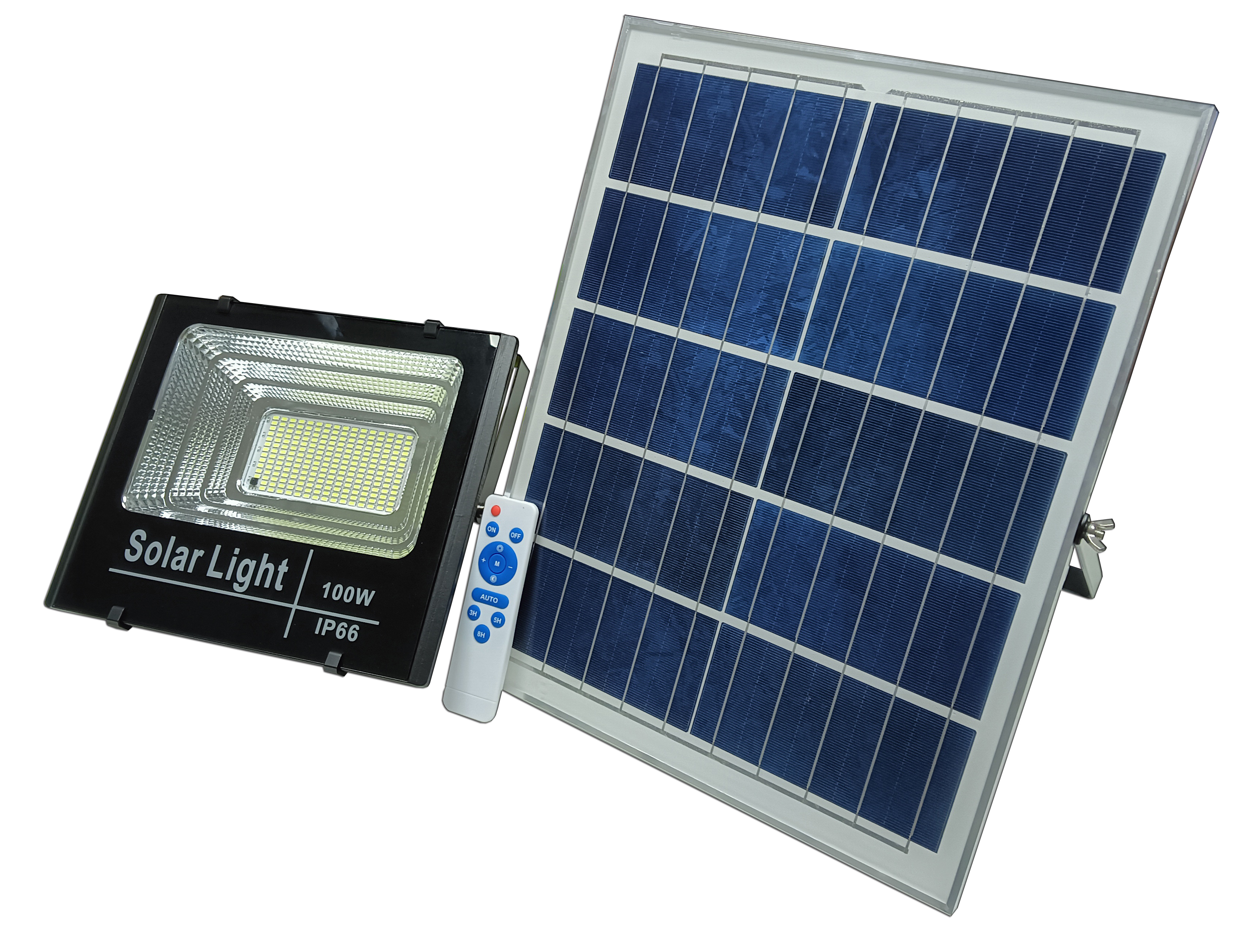Foco proyector LED Solar orientable con chip. Fabricado en aluminio para su gran disipación y cristal. Cuenta con un IP66 que lo hace ideal para zonas de exterior. El foco proyector LED Solar incluye panel solar con un cable de aproximadamente de 3 mts de longitud, soporte para el panel solar y mando a distancia. Funcionamiento: La luz se enciende automáticamente al anochecer con luminosidad reducida del 50% hasta por la mañana. El sensor integrado activa la luz con máxima intensidad durante 30 segundos si detecta una presencia en un espacio de 7-8 metros hasta cuando deja de detectar movimientos. Funciones del Mando a distancia: Botón ON/OFF: el proyector LED se enciende al pulsar el botón ON y pulsando el botón OFF, el proyector se apaga.(El proyector no se podrá encender de día o cuando capte suficiente luminosidad en el entorno) Botón máxima luminosidad: Aumenta la luminosidad en intervalos de 20% hasta llegar al 100% Botón mínima luminosidad: Disminuye la luminosidad en intervalos de 20% hasta llegar al 20% Cuando el panel Solar no detecta luz solar, el foco se encenderá automáticamente. Tarda aproximadamente 6 horas en descargarse.