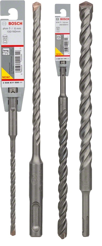 BOSCH BROCA SDS-PLUS PLUS-3 8X50X110 Pastilla con punta centradora de widia de alta calidad para gran vida útil perforando. Diseño espiral resistente. Para una gran vida útil. Certificación de calidad PGM.