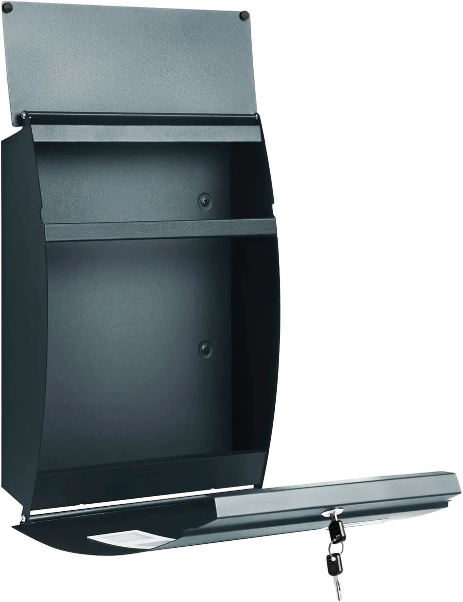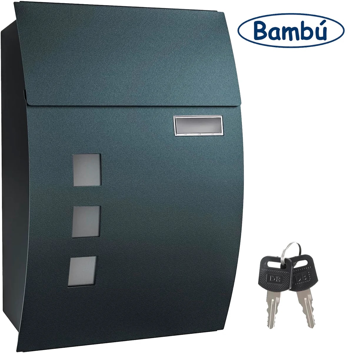 Buzón con mirillas. Material acero galvanizado mediante recubrimiento en polvo. Uso exterior.Incorpora ventanas de visualización y placa identificación+kit tornillo/taco. Medidas 32x11x44.5 cm