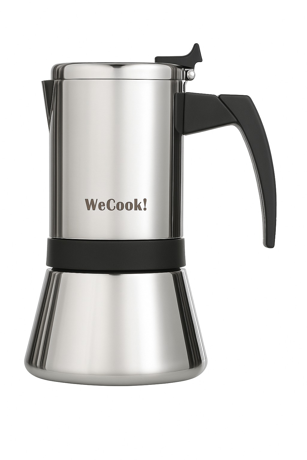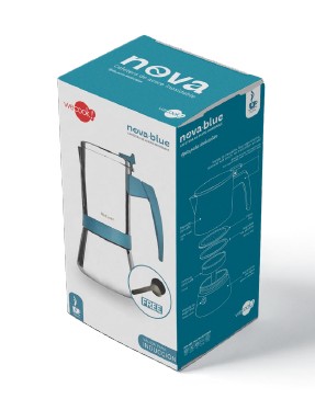 Cafetera de acero inoxidable, apta para inducción. Mango de baquellita, termoresistente y ergonómico con acabado "Soft touch". Válvula de seguiridad de níquel. Apta para todo tipo de cocinas incluida la inducción. Incluye cuchra medidora. Disponible en dos colores: Negro y Azul.