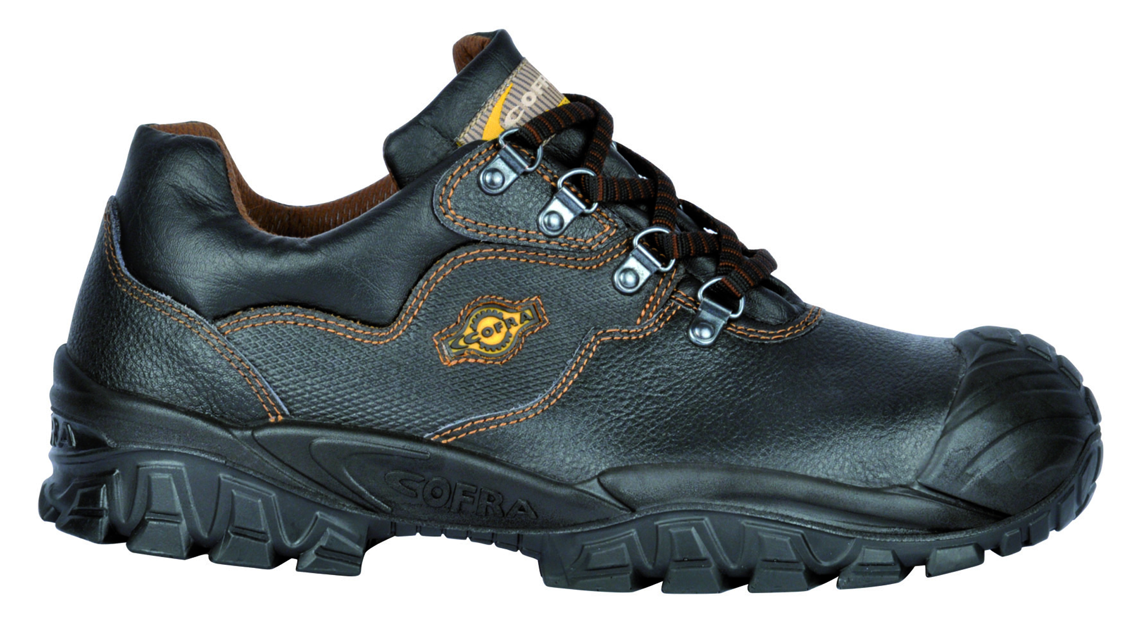 Calzado bajo, en piel hidrófuga, color negro, con forro en TEXELLE, antiestático antishock, antideslizante, con plantilla en acero antiperforante. Lengueta a soplilo antipolvo, collarín acolchado.Protección de la punta en poliuretano. Depósito, talleres mecánicas, industria en general. Modo Conservación: Mantenerlo siempre limpio y dejarlo secar en sitio ventilado lejos de fuentes de calor. Tratar periodicamente el cuero con una crema adecuada, no agresiva. Se recomienda no usar por mucho tiempo y repetidamente en presencia de agentes orgánicos, herbicidas o plaguicidas ácidos fuertes o temperaturas extremas. Evitar la inmersión completa en agua de playa, en barro, hidrato de cal o cemento mezclado con agua.