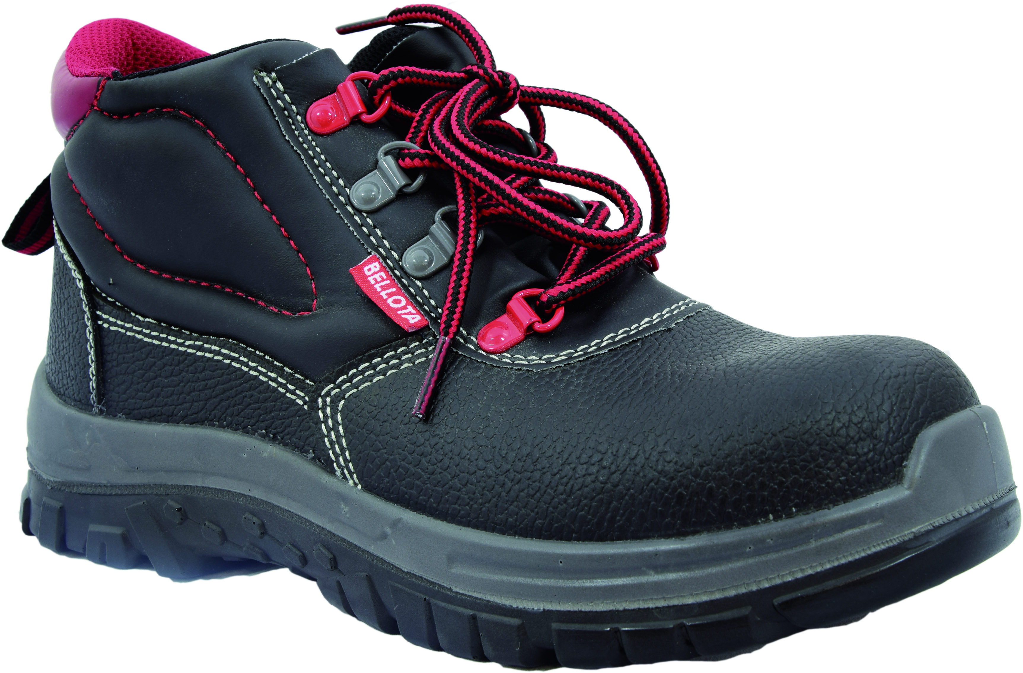 Bota de seguridad Classic S3, con plantilla antiperforación y puntera de protección metálicas. El corte está compuesto de piel hidrófuga negra con detalles en rojo y gris. Cómoda y robusta, para la construcción y la industria.