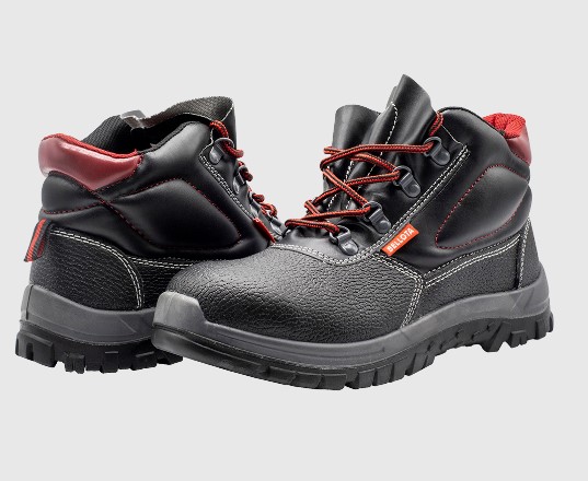 Bota de seguridad Classic S3, con plantilla antiperforación y puntera de protección metálicas. El corte está compuesto de piel hidrófuga negra con detalles en rojo y gris. Cómoda y robusta, para la construcción y la industria.