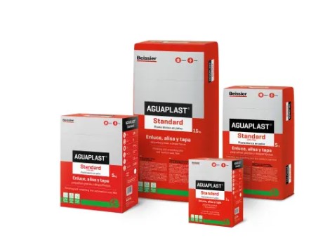 Aguaplast Standard Enluce, alisa y tapa Aguaplast Standard Descargas Ficha técnica Aguaplast Standard Ficha de seguridad Aguaplast Standard Aguaplast Standard familia Aguaplast Standard Estuche 1KG Aguaplast Standard Estuche 5KG Aguaplast Standard Saco 5KG Aguaplast Standard Saco 15KG Certificado EPD Enluce, alisa y tapa pequeñas grietas y desperfectos CAMPOS DE APLICACIÓN Sobre soportes interiores absorbentes como: yeso, placa de cartón yeso, pinturas antiguas absorbentes o mates, cemento, hormigón, madera,... Tendido de paredes nuevas. Alisado y nivelado de paredes tras arrancar papel pintado. Relleno de pequeños desperfectos: desconchados, agujeros, fisuras, grietas ... PROPIEDADES Proporciona un acabado fino, duro y de gran calidad, apto para cualquier tipo de pintura plástica, papeles pintados,... Fácil de preparar. Se aplica cómodamente a llana. Lijado rápido y sencillo. Reduce y homogeneiza la absorción del soporte, ahorrando pintura. Buena adherencia. Secado rápido. No merma en el espesor recomendado.