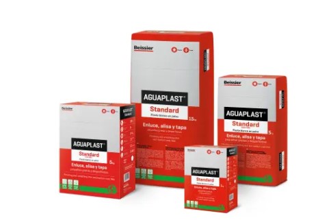 Aguaplast Standard Enluce, alisa y tapa Aguaplast Standard Descargas Ficha técnica Aguaplast Standard Ficha de seguridad Aguaplast Standard Aguaplast Standard familia Aguaplast Standard Estuche 1KG Aguaplast Standard Estuche 5KG Aguaplast Standard Saco 5KG Aguaplast Standard Saco 15KG Certificado EPD Enluce, alisa y tapa pequeñas grietas y desperfectos CAMPOS DE APLICACIÓN Sobre soportes interiores absorbentes como: yeso, placa de cartón yeso, pinturas antiguas absorbentes o mates, cemento, hormigón, madera,... Tendido de paredes nuevas. Alisado y nivelado de paredes tras arrancar papel pintado. Relleno de pequeños desperfectos: desconchados, agujeros, fisuras, grietas ... PROPIEDADES Proporciona un acabado fino, duro y de gran calidad, apto para cualquier tipo de pintura plástica, papeles pintados,... Fácil de preparar. Se aplica cómodamente a llana. Lijado rápido y sencillo. Reduce y homogeneiza la absorción del soporte, ahorrando pintura. Buena adherencia. Secado rápido. No merma en el espesor recomendado.