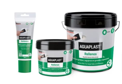 Aguaplast Rellenos pasta Rellena grietas y agujeros en grandes espesores Aguaplast Rellenos pasta Descargas Ficha técnica Aguaplast Rellenos pasta Ficha de seguridad Aguaplast Rellenos pasta Aguaplast Rellenos pasta Aguaplast Rellenos pasta Tubo 200ml Aguaplast Rellenos pasta Tarro 1KG Aguaplast Rellenos pasta Cubo 5KG Rellena grietas y agujeros en grandes espesores CAMPOS DE APLICACIÓN Sobre materiales de obra interiores (hormigón, ladrillo, yeso, escayola, piedra, cartón-yeso, etc.). Enlucidos en capa media. Nivelación de superficies ligeramente irregulares. Enlucidos sobre placas de porexpan. Reparación de fisuras y grietas hasta 5 mm de ancho. PROPIEDADES Buena capacidad de relleno. Mínima merma. Gran facilidad de lijado. Excelente tapa-grietas. Muy adherente sobre materiales de obra. No descuelga. Ligero. Color: Blanco.