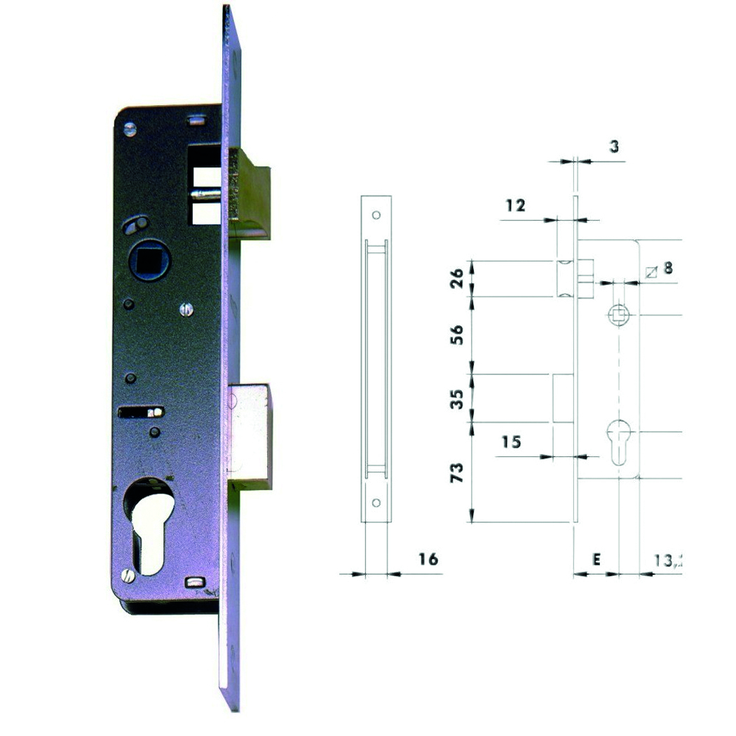 Cerradura de embutir con frente en acero cromado leva corta (13,2mm). Frente 22x3mm.Resbalón reversible y palanca. Entradas de 23, 28, 33 o 38mm. Se suministra con cilindro F5 3030 Niquel y cerradero. Dos escudos de nylon para cilindro. Tornillo fijación cilindro.