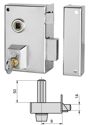 Picaporte accionado mediante manilla por ambos lados. Palanca de una vuelta de llave accionable por ambos lados. Posibilidad de elección entre cilindro de perfil o cilindro redondo. Dos acabados: hierro esmaltado y hierro niquelado. Cerradero según cerradura. Embellecedor según tipo de cilindro. Componentes de sujeción. MEDIDAS B:35 MEDIDAS A:60