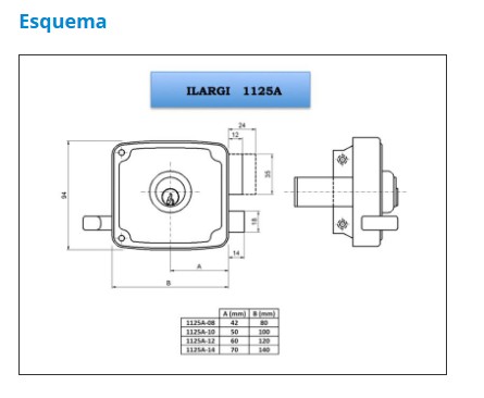 1125A CERRADURA SOBREPONER CILINDRO - Cerradura con cilindro ambos lados - Cerradura con palanca y picaporte - Palanca accionada con llave por ambos lados. Palanca a dos vueltas - Picaporte accionado con llave y tirador por el interior y con llave exteriormente - Cilindro con 3 llaves - Acabado en Hierro Esmaltado Alta Resistencia - 4 medidas de caja: 80, 100, 120 y 140 mm. - Bombillo Redondo (50-LP) - Medidas especiales bombillo redondo (50-LP) - Posibilidad de igualación de bombillos Tamaño Caja 80 mm. 100 mm. 120 mm. 140 mm. Mano Derecha Izquierda Bombillo Redondo (50-LP) Tamaño Bombillo 50 mm. Bombillos Espec. De 35 a 90 mm. Embalaje Unitario 1 Embalaje Caja 20