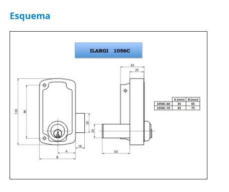 1056C CERRADURA SOBREPONER CILINDRO - Cerradura con cilindro ambos lados - Cerradura solo con palanca - Palanca accionada con llave por ambos lados. Palanca a una vuelta - Cilindro con 3 llaves - Acabado en Hierro Esmaltado Alta Resistencia - 2 medidas de caja: 60 y 70 mm. - Bombillo Redondo (50-LP) - Medidas especiales bombillo redondo (50-LP) - Posibilidad de igualación de bombillos Tamaño Caja 60 mm. 70 mm. Mano Derecha Izquierda Bombillo Redondo (50-LP) Tamaño Bombillo 50 mm. Bombillos Espec. De 35 a 90 mm. Embalaje Unitario 1 Embalaje Caja 20