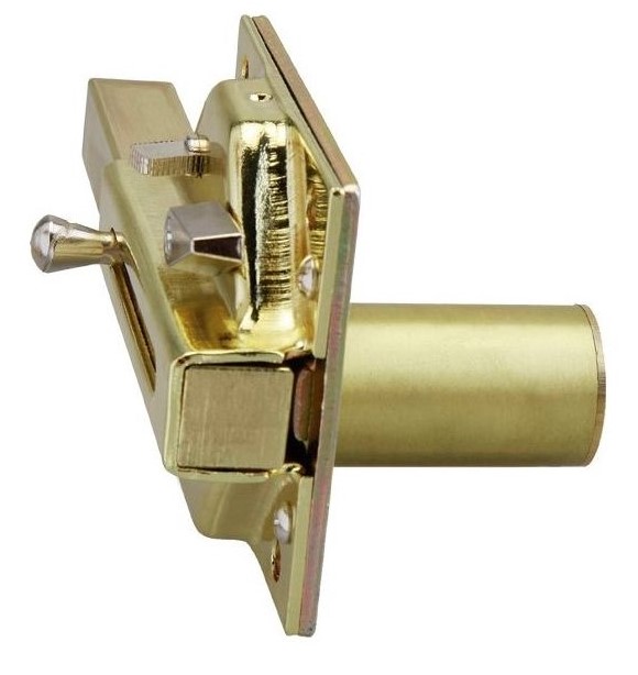 Cerrojo cuerpo de acero. Condena de palanca desde el interior. Esta opción es desactivable, si el cliente así lo requiere debe especificarlo en su pe- dido. Disponible con cilindro y sin cilindro. Utilizable para puertas de apertura izquierda o derecha. Acabado latonado y niquelado brillo. Palanca de acero cromoda, cuadrado 17mm. En la versión con cilindro se suministra con 5 llaves de la serie M. Combinable con cilindros serie RX y candados HUN080.
