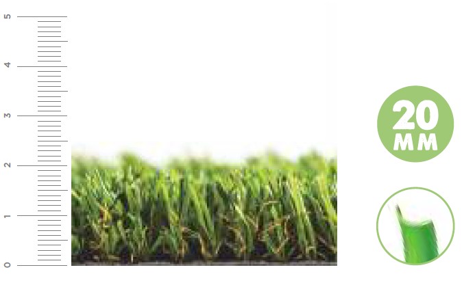 Césped Artificial 20mm rollos de 2x5m. Muy resistente y fácil de limpiar. Una inmejorable combinación de suavidad y efecto memoria. 20 mm de césped sintético con excelentes propiedades y sobre todo versatilidad.
