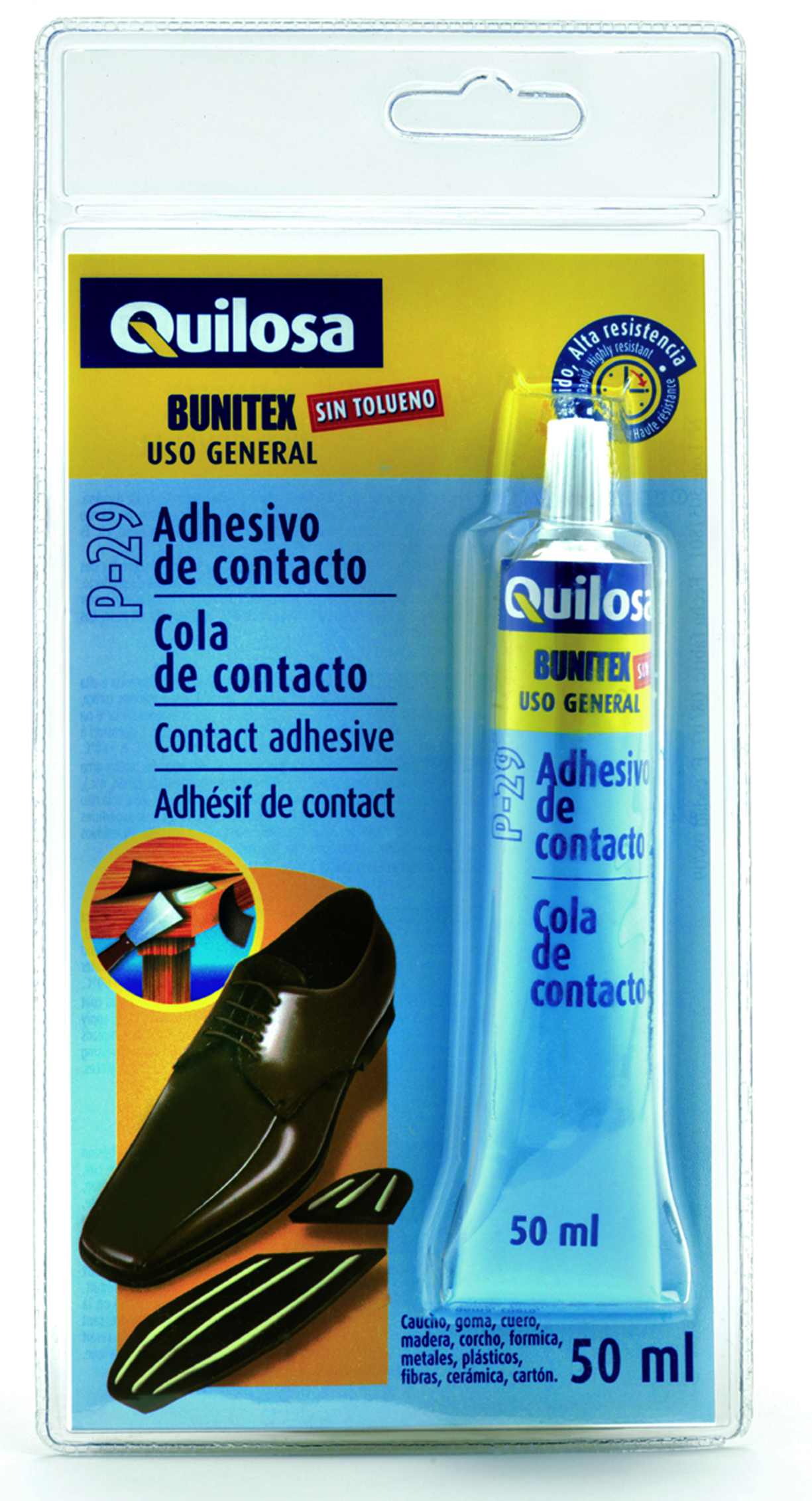 ADHESIVO DE CONTACTO de SECADO RÁPIDO. Fuerte adhesión y alta resistencia. Pegado de caucho, goma, cuero, madera, corcho, formica, metal, plásticos, fibras vegetales o sintéticas, cerámica, cartón, tejidos