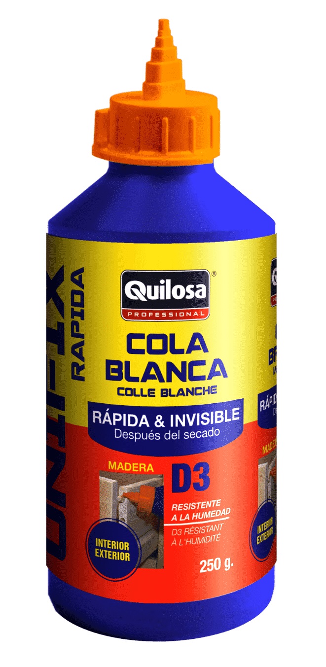 Cola blanca. Rápida: fragua en 5 minutos. Fácil aplicación. Transparente un a vez seca. Ideal para el encolado de todo tipo de muebles de madera, pegad o de aglomerados, laminados, cartón, papel y piezas de modelismo.