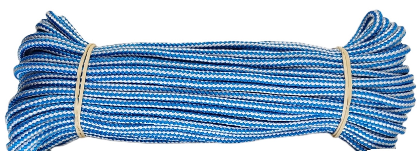 Cordón trenzado de 5 mm con un alma interior de filástica y camisa exterior de polipropileno. Indicado para el exterior en tendederos, toldos, persianas, invernaderos, sujeción de redes de protección, banderas… El formato se presenta en madejas de 10, 15 y 20 metros en color blanco liso, blanco/azul y blanco/verde. También se presenta en rollos a 200 metros en color blanco liso, blanco/verde, blanco/azul, blanco/marrón, negro liso, marrón liso y tricolor.