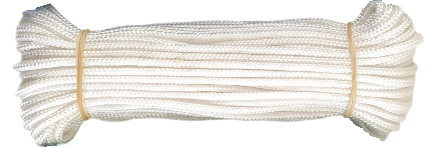 Cordón trenzado de 4 mm con un alma interior de filástica y camisa exterior de polipropileno. Indicado para el exterior en tendederos, toldos, persianas, invernaderos, sujeción de redes de protección, banderas… El formato se presenta en madejas de 10, 15 y 20 metros en color blanco liso, blanco/azul y blanco/verde. También se presenta en rollos a 200 metros en color blanco liso, blanco/verde, blanco/azul, blanco/marrón, negro liso, marrón liso y tricolor.