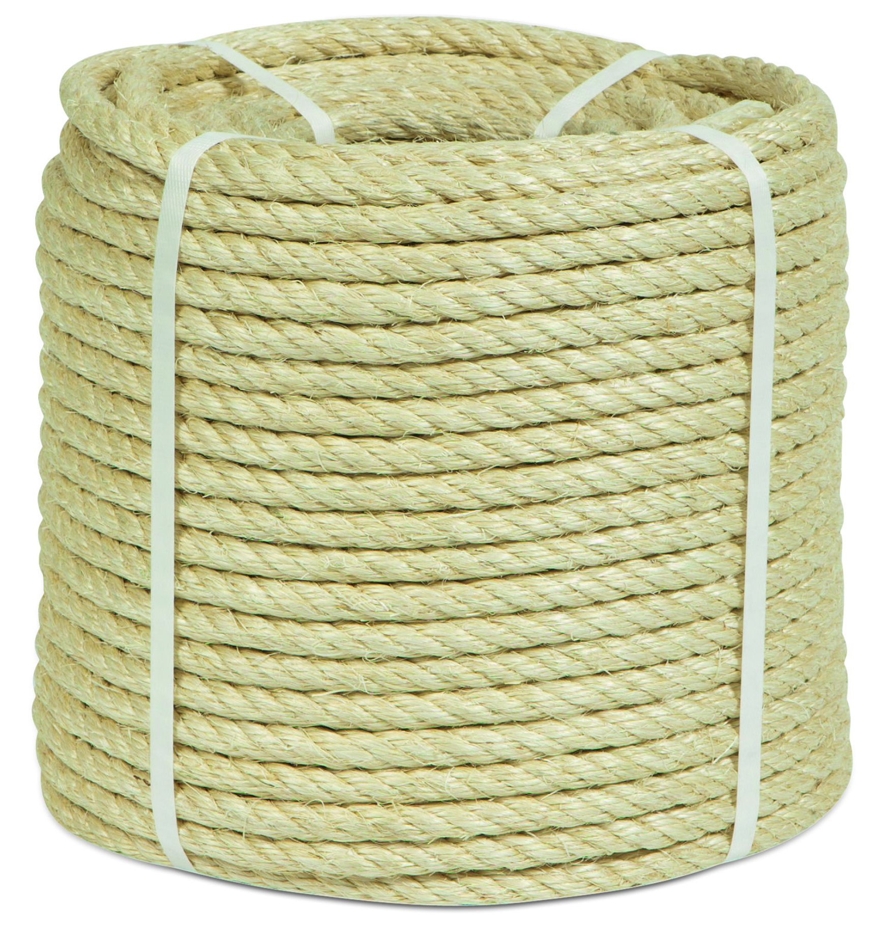 Cuerda de sisal torcida a 4 cabos sin alma, es una fibra 100% natural flexible obtenida de la pita, biodegradable. Esta indicada para su uso en decoración, deportes, paquetería, trabajos manuales, juguetes para animales, aserraderos, construcción y agricultura. Disponible desde 4 m/m hasta 30 m/m de diámetro. Fabricada en España.