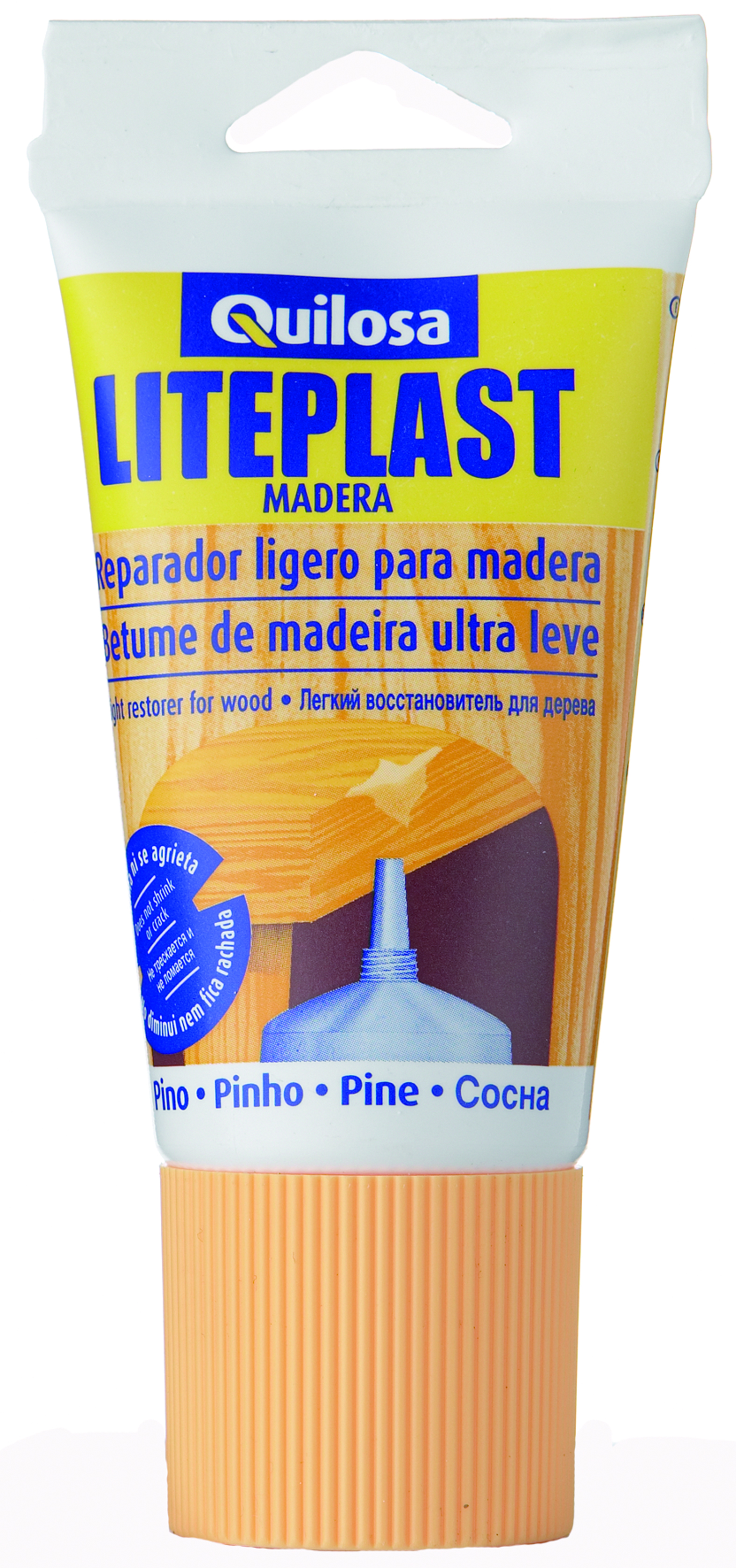 Reparador ligero para madera. Rellena y repara rápidamente agujeros y despe rfectos en la madera. Como el resto de productos liteplast no merma ni se a grieta y se puede pintar, barnizar y lijar.