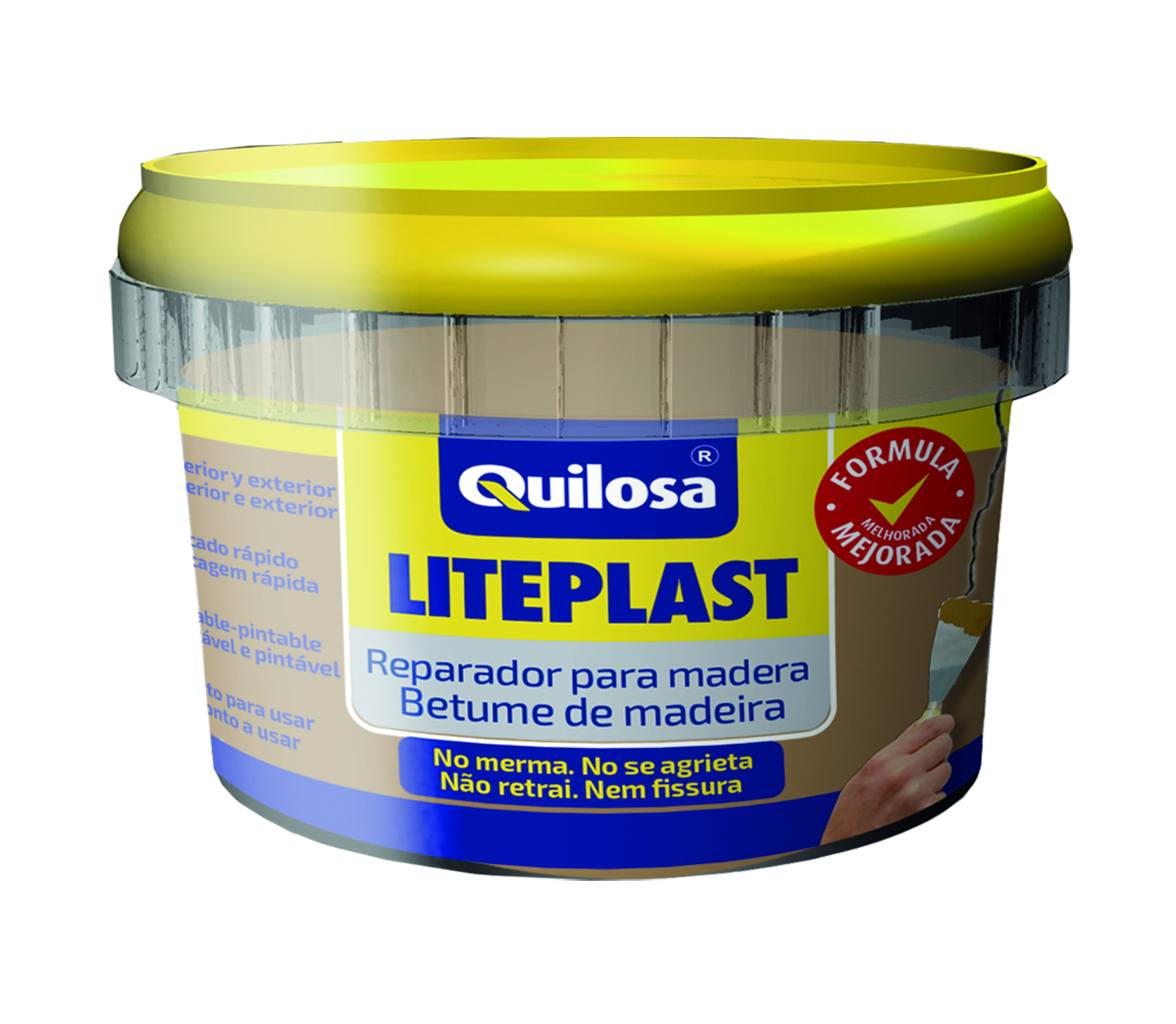 Reparador ligero para madera. Rellena y repara rápidamente agujeros y despe rfectos en la madera. Como el resto de productos liteplast no merma ni se a grieta y se puede pintar, barnizar y lijar.