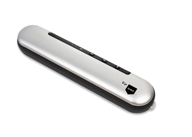 Envasadora al vacío doméstica V GO inalámbrica con barra de sellado 30cm. Capacidad: 1500 mAh. Máxima succión: 55 Kpa. Bomba de vacío: 3,8 L/min. Envasadora inalámbrica (opción de envasado con y sin cable).Uso doméstico. Más de 30 ciclos de envasado con una carga completa de batería. Funciones: Automática, sellado y vacío manual . Incluye: Cortador de bolsas, muy práctico,Tubo de aspiración, Rollo gofrado, Cable de alimentación, USB CMedidas: 37,6 x 7,8 x 5,8 cm.