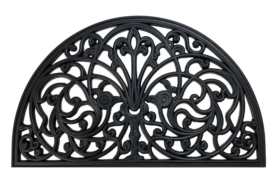 Goma caucho 100% con base antideslizante, imitación forja, sin base. Felpudo limpiabarros. Resistente y muy fácil limpieza. Medida 45×75 cm. Modelo: Semiluna