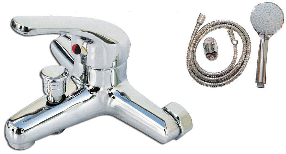 Monomando ducha/bañera. Incluye accesorios: flexo de ducha 1.5 mt., mango de ducha y soporte.