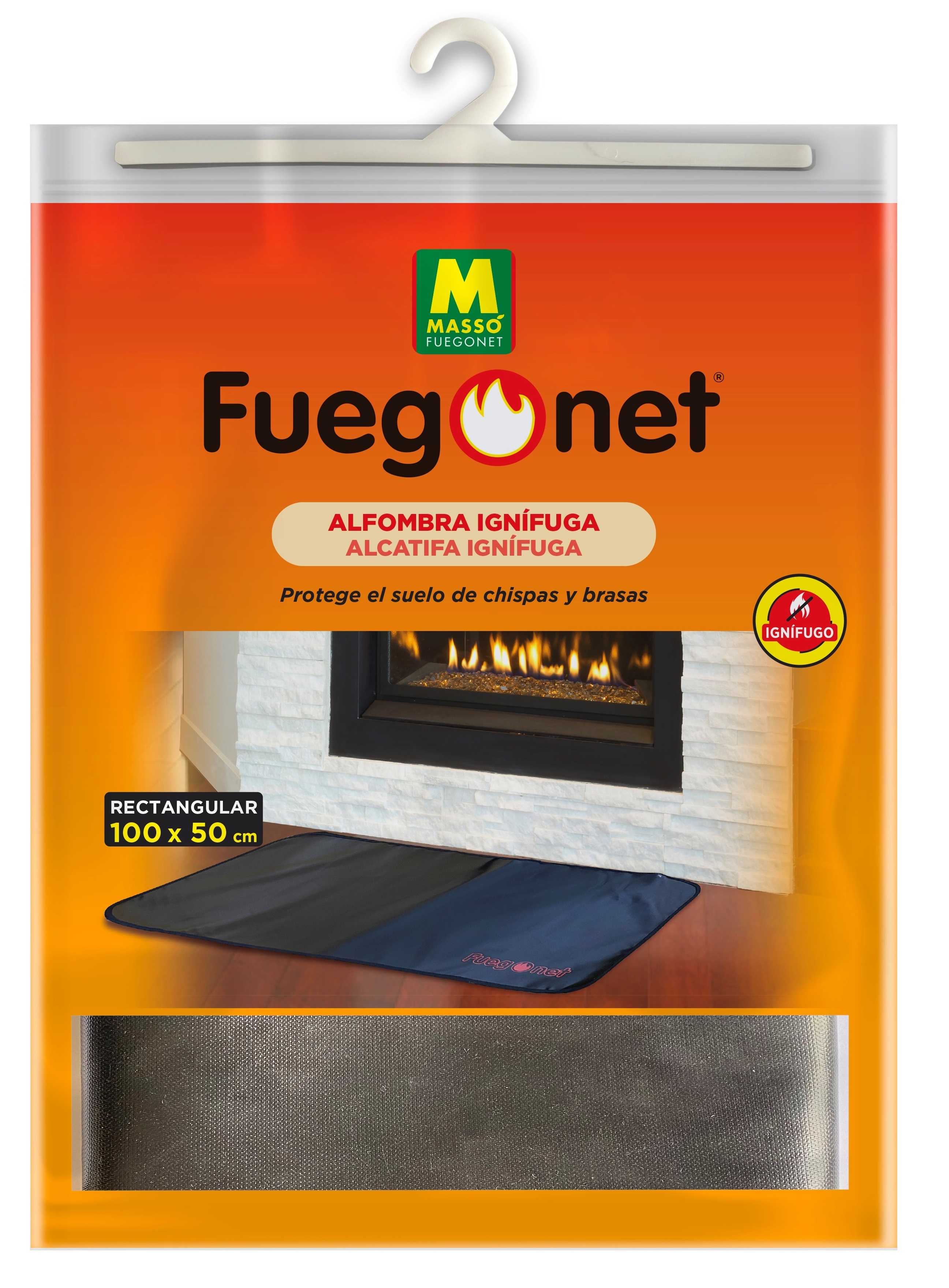La Alfombra ignífuga Fuegonet está especialmente diseñada para la protección del suelo en chimeneas, barbacoas y hornos. Confeccionada con tejido ignífugo permanente para proteger el suelo y entorno de chispas, brasas, pavesas y cenizas originadas durante el proceso de combustión en chimeneas y barbacoas. Está acabada con refuerzos de cinta bies para evitar su deshilachado y cosida con hilo ignífugo. Su especial tejido y composición la hacen apta tanto para interiores como para exteriores. Puede usarse por cualquiera de las dos caras, ya sea en exterior para uso en barbacoa o interior para uso delante de la chimenea. Si se ubica en el exterior, su desgaste con la exposición al sol es muy lento. Es impermeable, posee una capa que repele agua y grasas y no emite olores desagradables. Resistente a la propagación de la llama. Efectiva en cualquier tipo de fuego,Sofoca fuego incipiente. Repele suciedad y líquidos, Fácil de limpiar con una esponja o paño mojado, Antideslizante e impermeable por ambas caras.