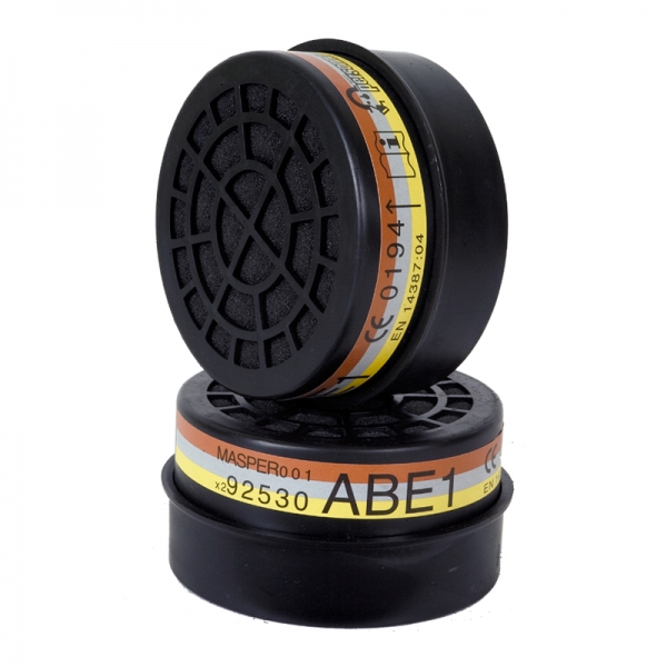 TIPO AB1 (MARRON Y GRIS) PROTEGE FRENTE A GASES Y VAPORES ORGÁNICOS CON PUNTO DE EBULLICIÓN SUPERIOR A 65ºC Y GASES Y VAPORES INORGÁNICOS.