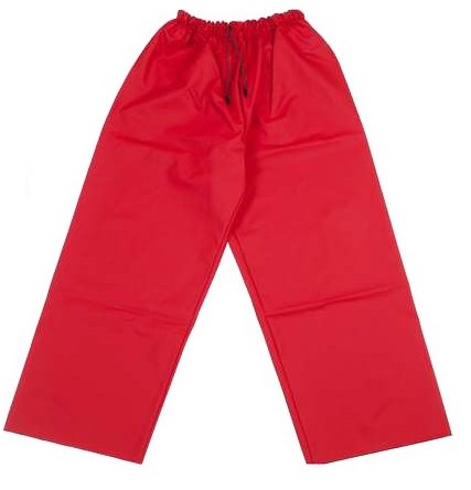 COLOR BURDEOS.PANTALON CON GOMA EN CINTURA, AJUSTABLE CON CORDON.TEJIDO DE PUNTO DE POLIESTER RECUBIERTO DE PVC RESISTENTE AL AGUA SEGUN LA NORMA EN 20811. TIENE UN ESPESOR DE 0.40MM.