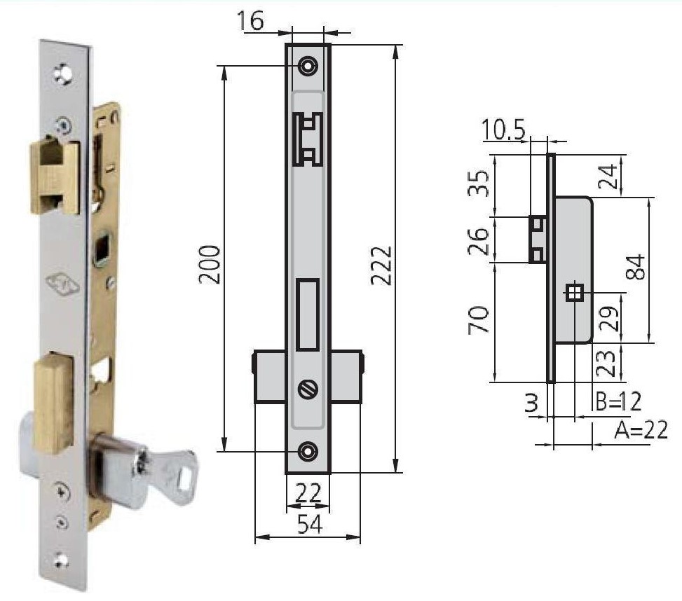 Cerradura de sólo picaporte. Sin cilindro. Opciones de cerradero. Cerradero CE196R/6. Frente de hierro niquelado o acero inoxidable. Caja bicromatada. Palanca deslizante. Picaporte reversible. Cuadradillo de 8mm Cilindro ovalado monoblock (5963). 2 escudos de nylon ref. ES1963. Tornillo de fi jación de cilindro.