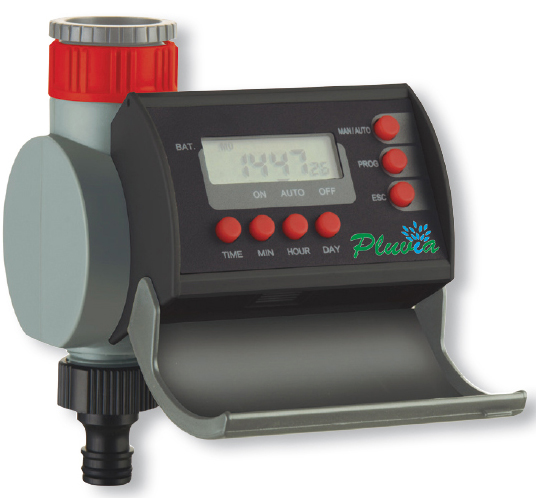 Funciona con pilas 1x9 V 8 Programas Incluye calendario y reloj Botón de seguridad Valido para grifos de: 3/4´´ y 1´´