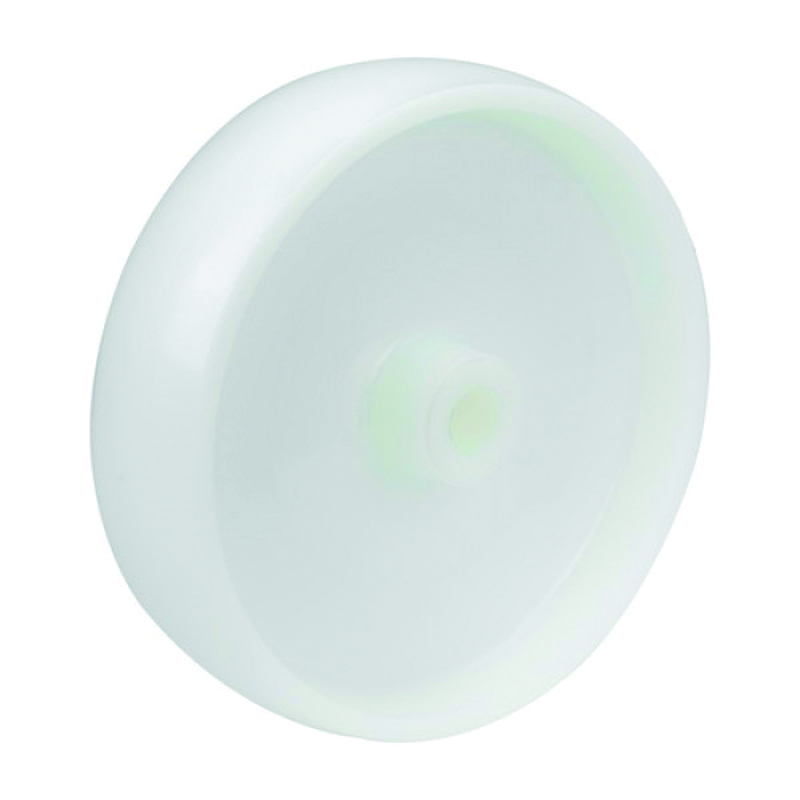 Rueda monobloque de nylon color blanco translucido. Cojinete liso. Carga máxima 125 kg. Diametro 63mm, ancho banda rodadura 25 mm. ancho del cubo del nucleo 31 mm. Diametro interior de rodamientos 10.2 mm.