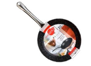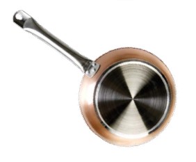 Modelo Sartén Profesional. Sartenes de aluminio forjado Espesor 2.8mm Antiadherente interior 2 capas libre en PFOA, ecológico. Apta para todo tipo de fuegos, inducción y horno. Base de inducción lisa COMPLETA. Recubrimiento exterior de silicona color cobre para una máxima resistencia al calor y las abrasiones. Mango de acero remachado en tres puntos para una máxima seguridad.