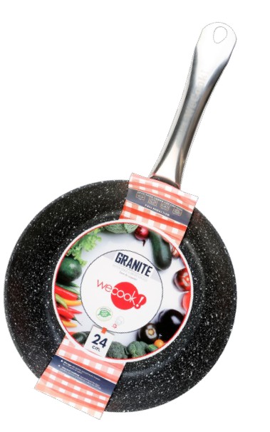 CARACTERISTICAS Espesor 3 mm Antiadherente tipo piedra interior y exterior, ibre en PFOA, ecológico. Apta para todo tipo de fuegos, inducción y horno. Base de inducción completa «Full induction». Mango de acero remachado en tres puntos para una máxima seguridad.