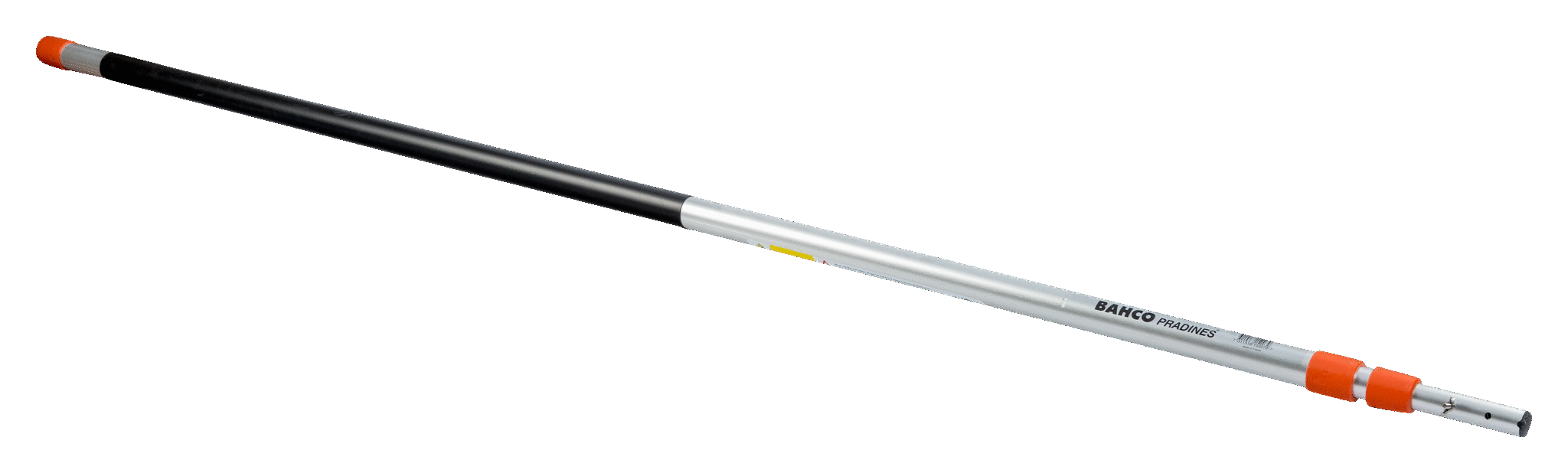 Pértigas telescópicas de aluminio o fibra de vidrio AP-. Medida: 5000 mm. Para trabajar en zonas difíciles de alcanzar de hasta 5 m de alto. Compatibles con todas las Tijeras de podar de altura (P34-37, P34-27A, P134) y todos los serruchos (339-6T, 340-6T, 383-6T, 384-6T, 384-5T, 385-6T, 386-6T).Pértiga de aluminio AP-5M, 3 piezas.Pértiga de aluminio AP-3M, 2 piezas.Diámetro máximo de 25 mm (1").Se suministra con un perno y una tuerca de mariposa. Poda en altura más segura gracias a las pértigas telescópicas ligeras. Solo hay que girar y bloquear el mecanismo en la posición correcta. Todos los serruchos y todas las Tijeras de podar de altura de Bahco son compatibles con estas pértigas, cuyo diámetro máximo es de 25 mm (1").Aluminio (AP)