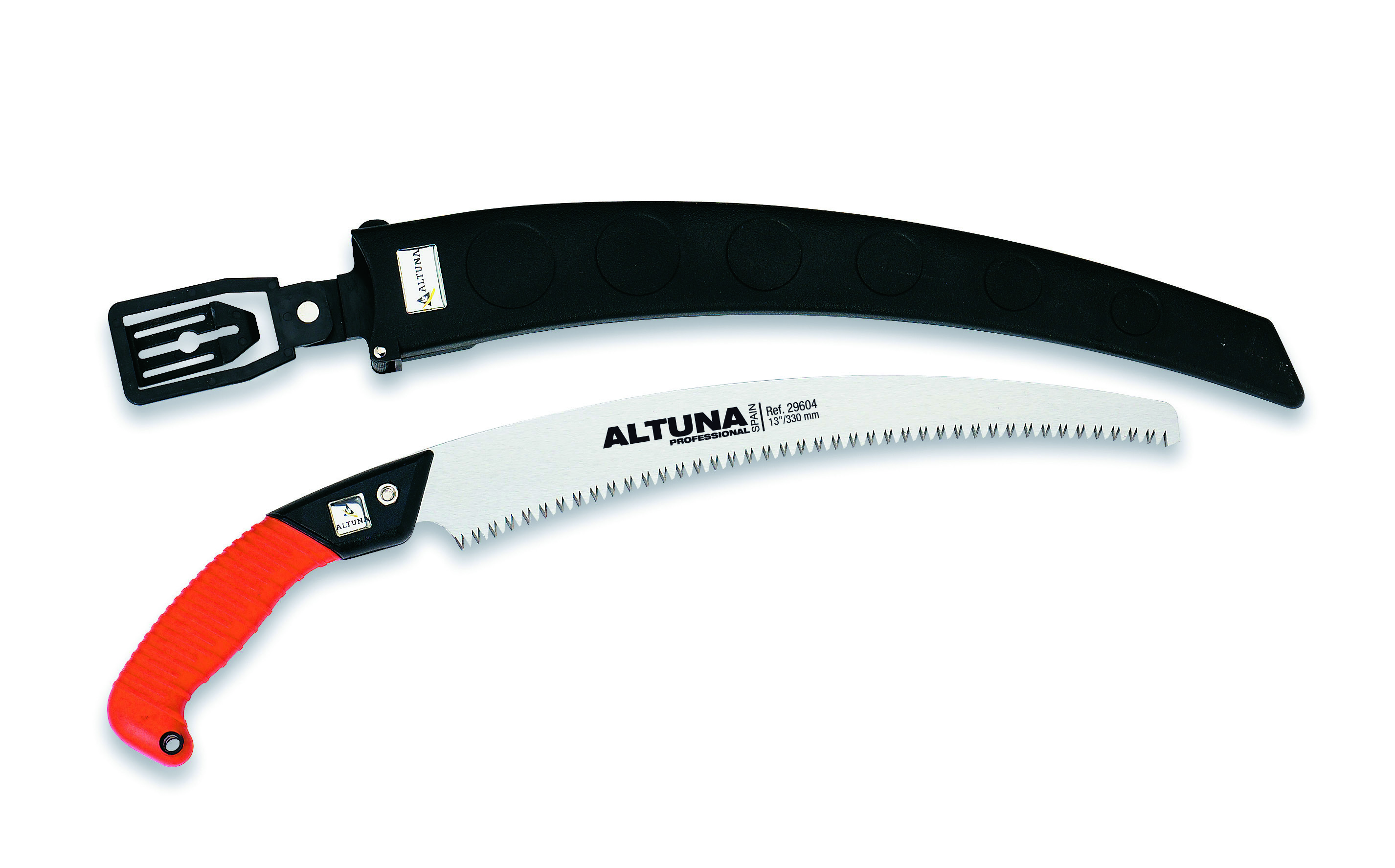 Serrucho altuna 29604. Modelo curvo dentado japones con mango de aluinio engomado y funda. Dentado japonés easycuting. Dientes endurecidos. Medida 330mm/13".
