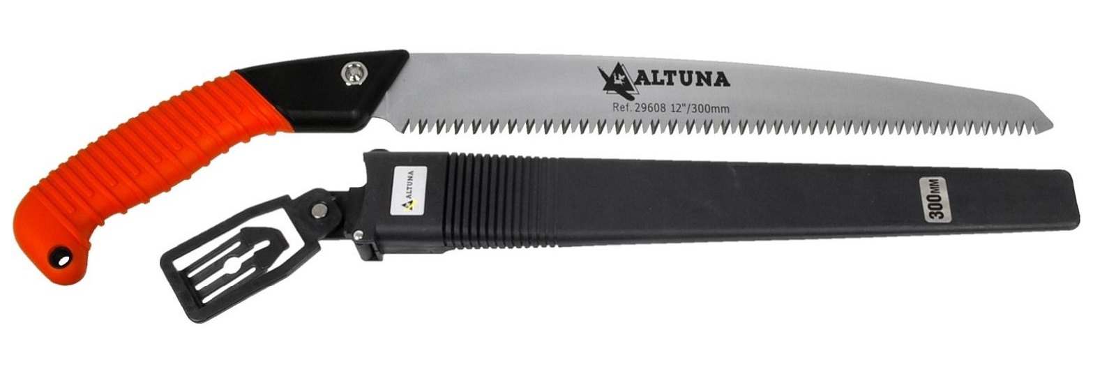 Serrucho altuna 29607. Hoja recta dentado japonés easycutting. Dientes endurecidos. Mango de aluminio y goma inyectada. Medida 270mm/10.5". Con funda.