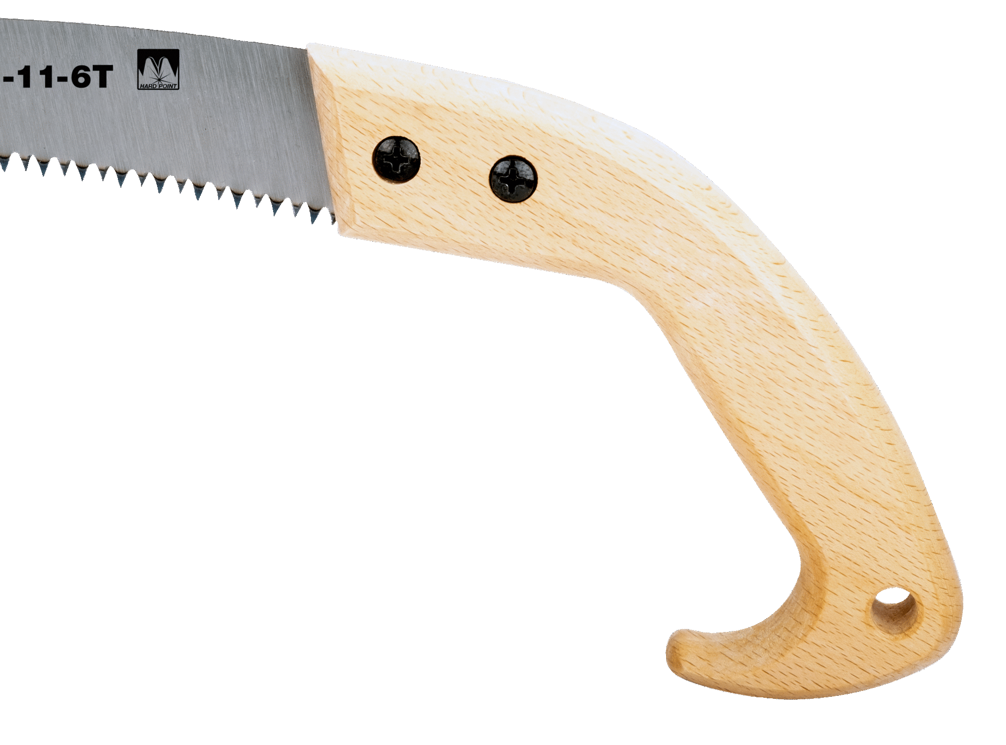 Serrucho de poda manual con dientes reafilables y mango de madera 6 DPP 14" .4212-14-6T. 360MM. Para madera seca o dura. Hoja curvada con dentado duro y totalmente rectificado. Con dentado duro (4211) y con dentado afilable (4212). Hoja curvada resistente con 6 dientes por pulgada. Disponibles con hojas de 11" y 14" de longitud.Mango de madera de haya cómodo y resistente, con un largo gancho.Hojas de repuesto disponibles.