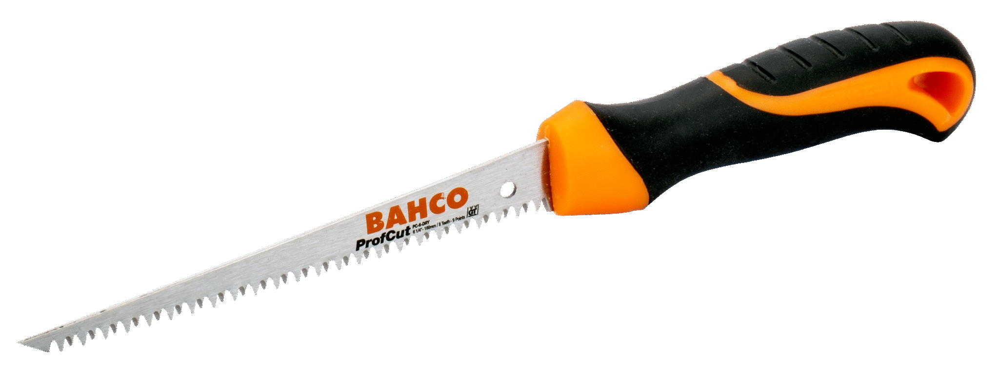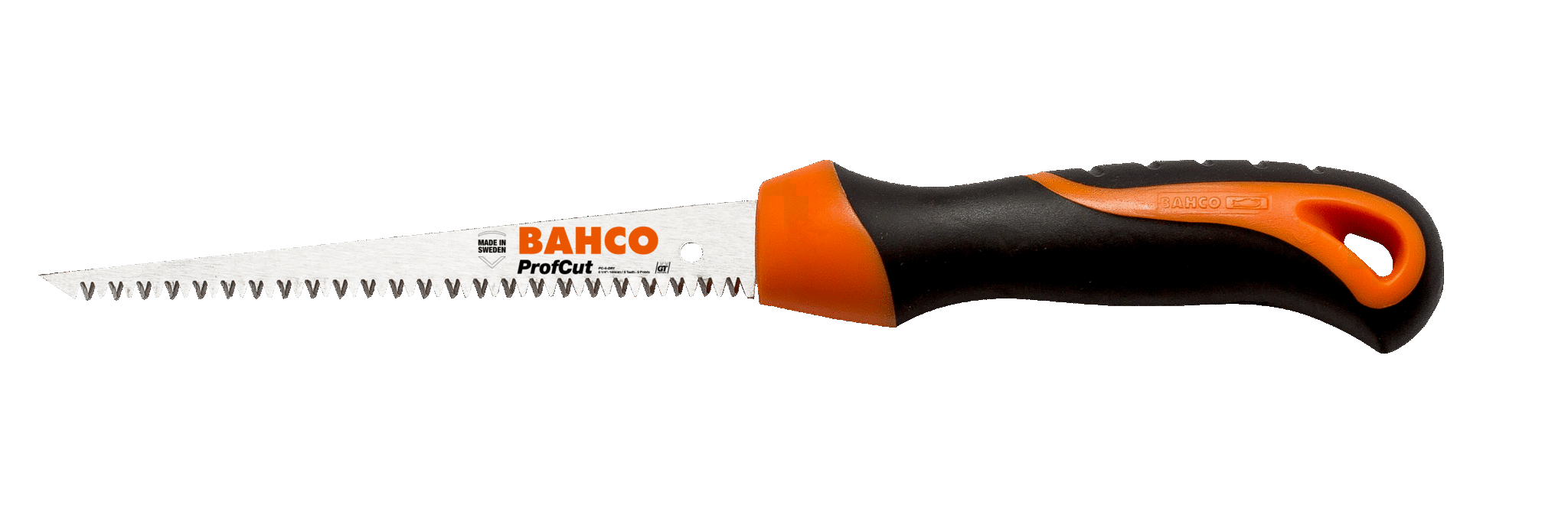 Sierras de calar para yeso/placas de escayola/tableros de materiales con base de madera. PC-6-DRY. 160mm. Para realizar agujeros en placas de escayola. La hoja robusta, con dientes de triple filo, termina en una punta afilada, que junto al cómodo mango bi-componente, lo hace perfecto para utilizarlo para penetración. Tras esto, el corte puede continuar para dar la forma deseada al agujero en la placa de escayola.