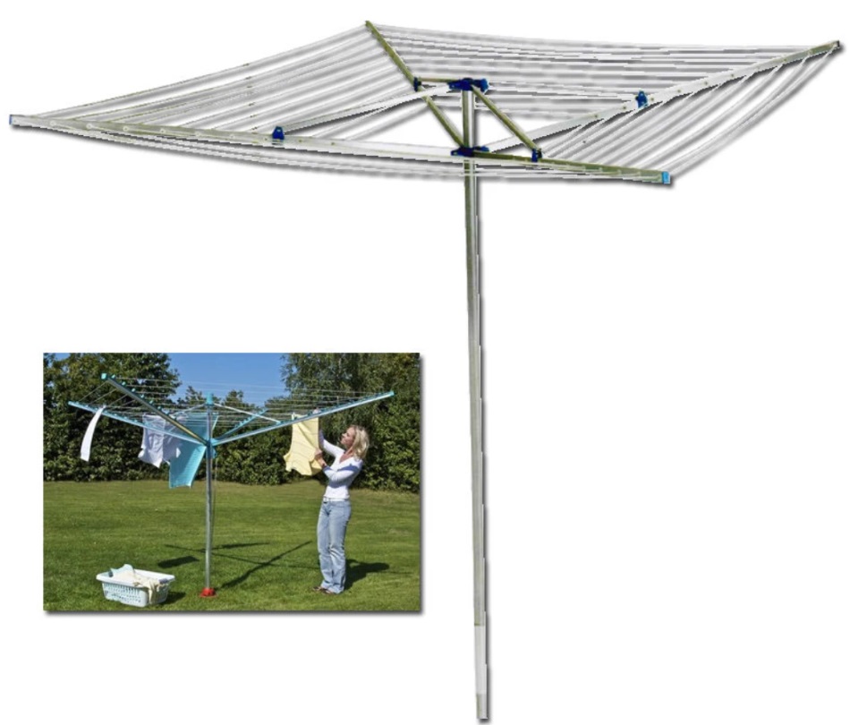 TENDEDERO JARDÍN EXTERIOR DE ALUMINIO SOMBRILLA REF. XIF028. 4 BRAZOS Y 50 MTS DE TENDIDO. MEDIDA: 195X195X160 CM.